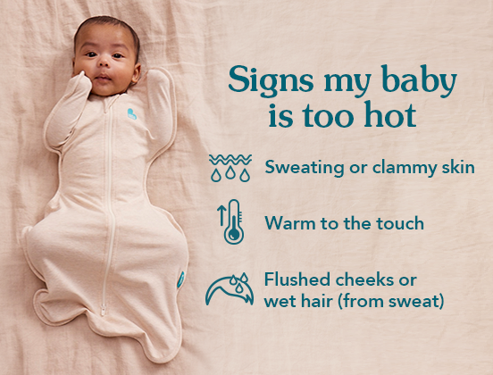 If your baby looks flushed or is sweating they are likely wearing too many layers and you should remove some clothing or lower the thermal grade of their sleeping bag or swaddle until they are at a comfortable temperature.