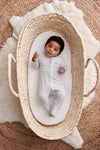 Perfect for in-between seasons this mid-weight fabric offers just the right balance of warmth and breathability. Soft, natural cotton with a touch of elastane to support your baby's movements offering a snug, yet flexible fit for natural sleep positions.