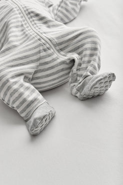 Enclosed Foot Romper Cotton Gray Stripe
