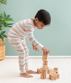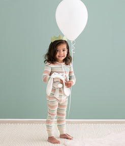 Perfect for in-between seasons this mid-weight fabric offers just the right balance of warmth and breathability. Soft, natural cotton with a touch of elastane to support your baby's movements offering a snug, yet flexible fit for natural sleep positions.