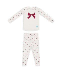 Kids Pajama Set Long Sleeve Snug Fit Viscose from Bamboo Cream Bows