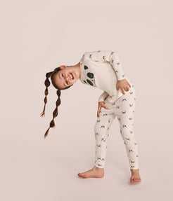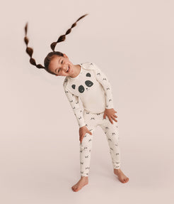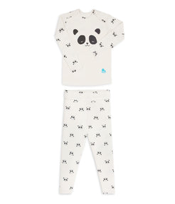 Kids Pajama Set Long Sleeve Snug Fit Viscose from Bamboo Cream Sleepy Pandas