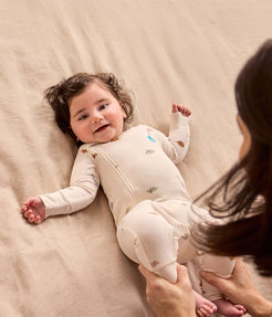 Designed to sit perfectly and comfortably under a swaddle or sleep sack, our side zippers work harmoniously with sleepwear to prevent extra bulk.
