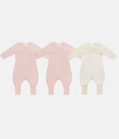 This Sleep Suit Bundle includes 2 x Sleep Suit Long Sleeve 1.0 TOG Cotton in Powder Pink Twinkle and 1 x Sleep Suit Long Sleeve 1.0 TOG Cotton in Tan Houndstooth.