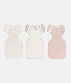 This bundle includes 1 x Swaddle Up™ Transition Bag 0.2 TOG Viscose from Bamboo Gold Sunny, 1 x Swaddle Up™ Transition Bag 1.0 TOG Organic Cotton Cream and 1 x Swaddle Up™ Transition Bag 1.0 TOG Cotton Powder Pink Twinkle